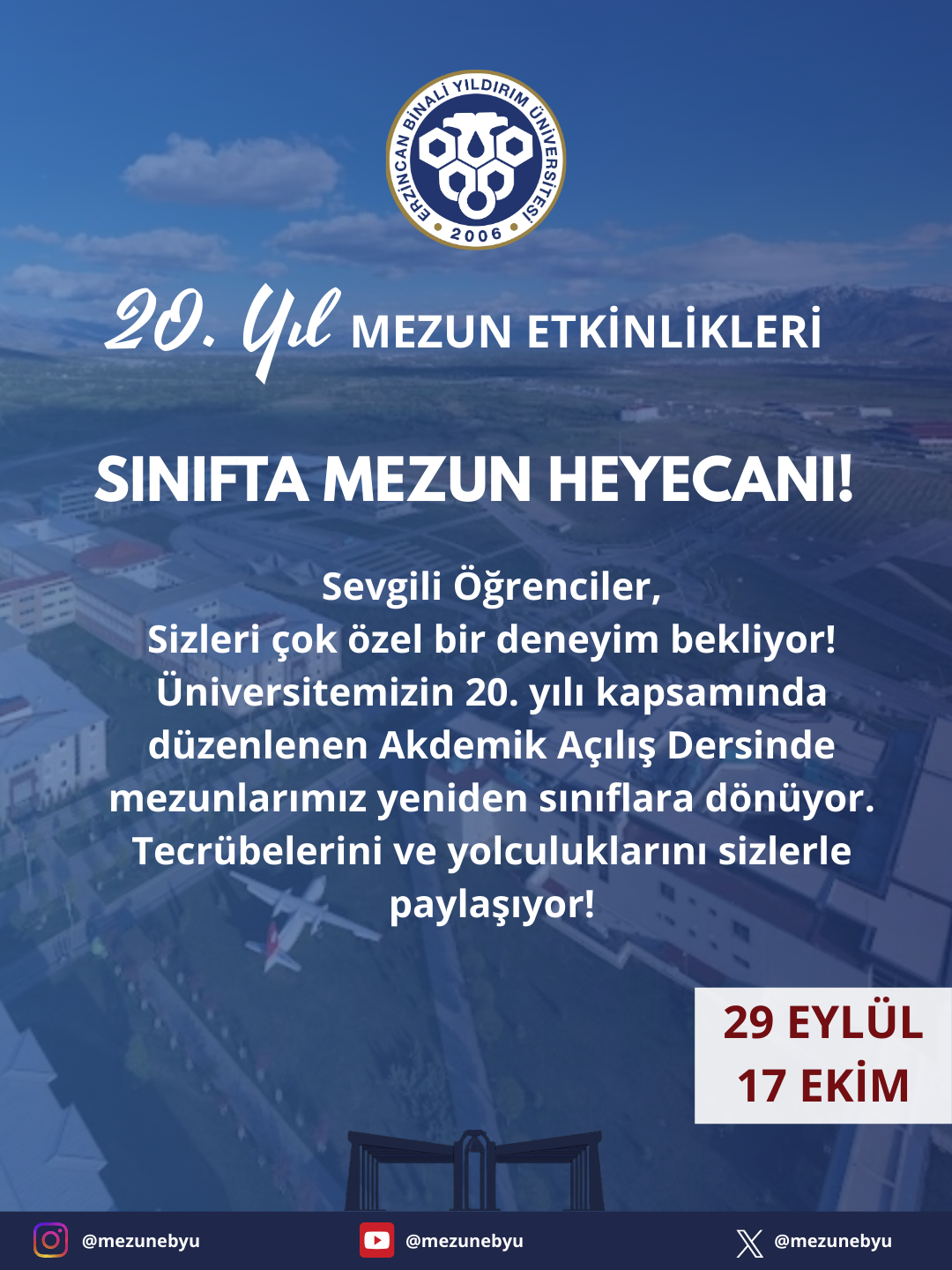Koordinatörlüğümüz tarafından üniversitemizin 20. yıl etkinlikleri kapsamında düzenlenen “Sınıfta Mezun Heyecanı” programı başarıyla tamamlandı. Etkinlik, 29 Eylül – 17 Ekim tarihleri arasında üniversitemizin tüm akademik birimlerinde yoğun ilgiyle gerçekleştirildi. Bu özel program kapsamında mezunlarımız, kendi bölümlerinde akademik açılış derslerine konuk oldu ve öğrencilerimizle bir araya gelerek kariyer yolculuklarını, mesleki deneyimlerini ve sektörel bakış açılarını paylaştı.… Okumaya devam et Üniversitemizin 20. Yılında “Sınıfta Mezun Heyecanı” Gerçekleşti